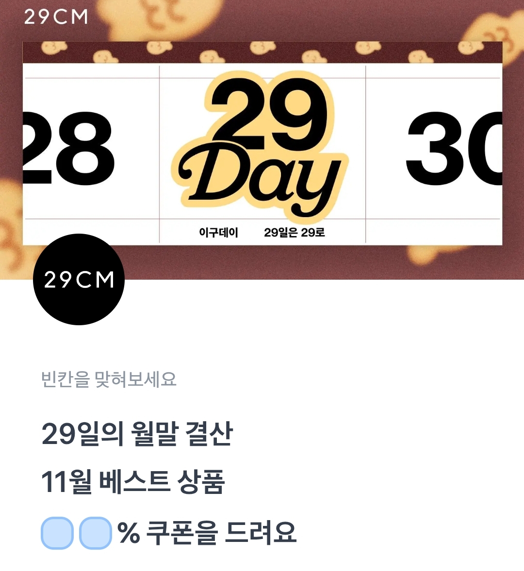 토퀴 토스퀴즈 29일의 월말 결산 11월 베스트 상품 ㅇㅇ%쿠폰을 드려요.