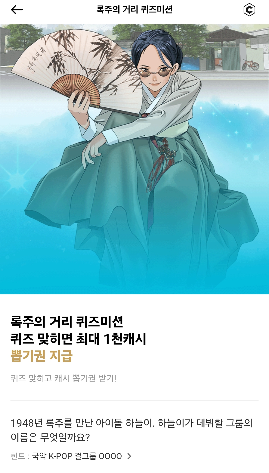 1948년 록주를 만난 아이돌 하늘이. 하늘이가 데뷔할 그룹의 이름은 무엇일까요?