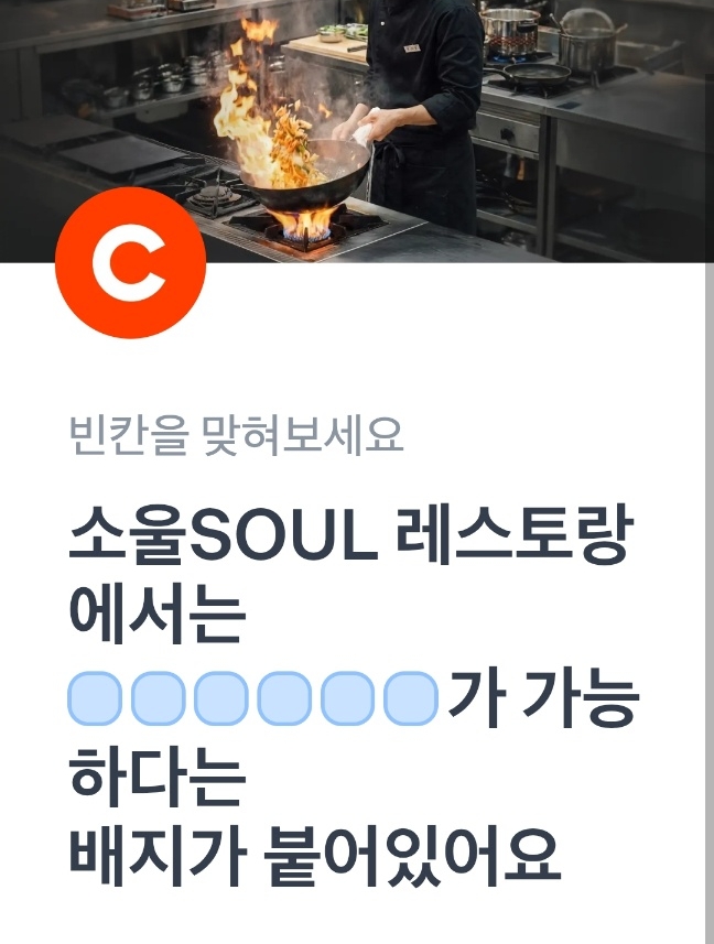 | 카카오페이지 스텔라떡볶이 퀴즈미션 위의 빈칸에 들어갈 단어는 무엇일까요? (0) | 2025.12.06 |