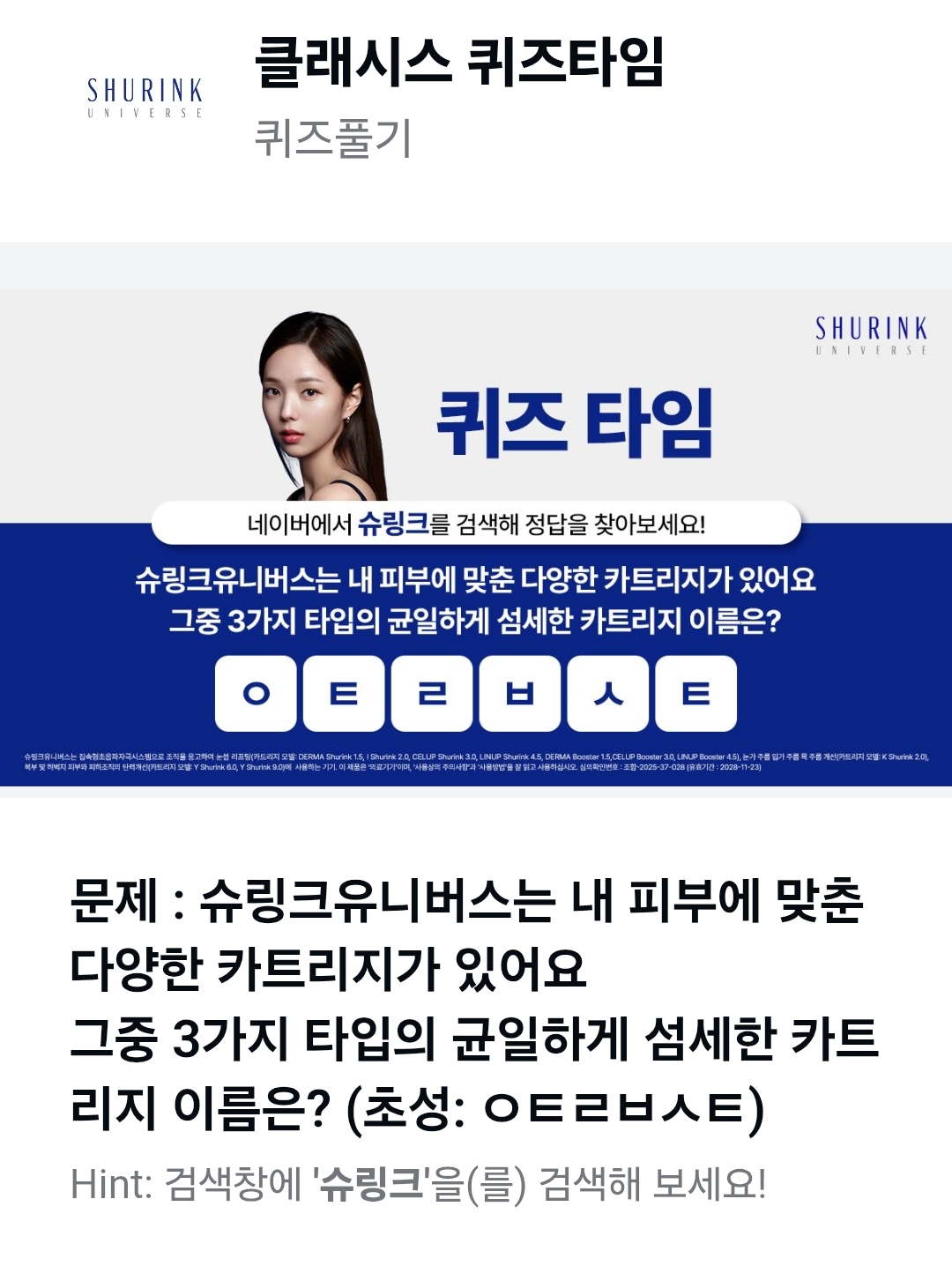 문제 : 슈링크유니버스는 내 피부에 맞춘 다양한 카트리지가 있어요