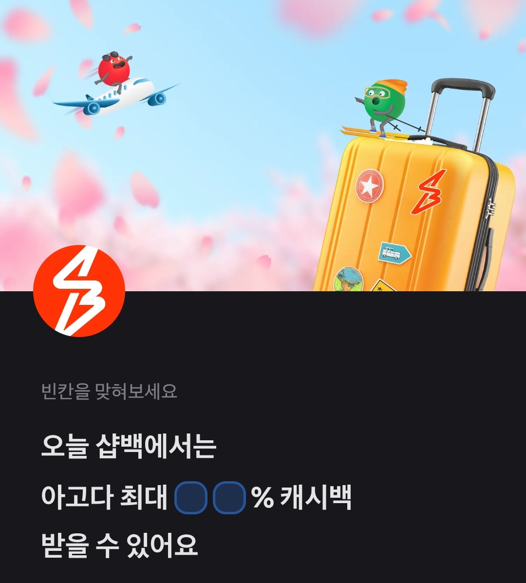오늘 샵백에서는 아고다 최대 ㅇㅇ% 캐시백 받을 수 있어요.