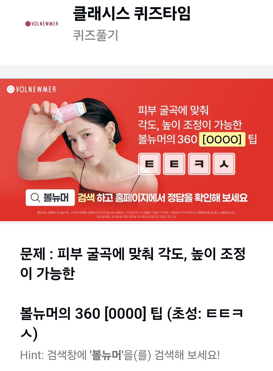문제 : 피부 굴곡에 맞춰 각도, 높이 조정이 가능한 볼뉴머의 360 [0000] 팁 (초성: ㅌㅌㅋㅅ)