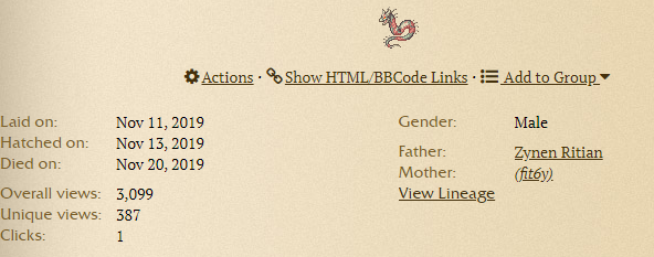 Welcome to Dragon Cave! Dragon Cave is an online adoptables game. Collect eggs, raise them to adulthood, and then breed them to create interesting lineages. New dragons are added regularly! These egg(s)/hatchling(s) are being offered for anyone to claim.