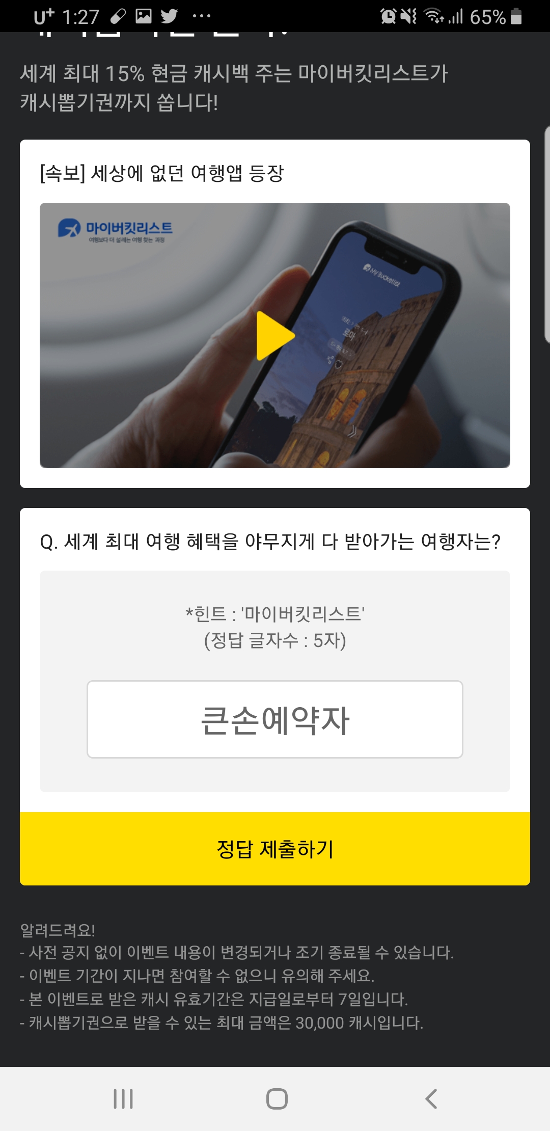 | 카카오페이지 퀴즈 정답은? '에버콜라겐예뻐딜' (0) | 2019.11.14 |