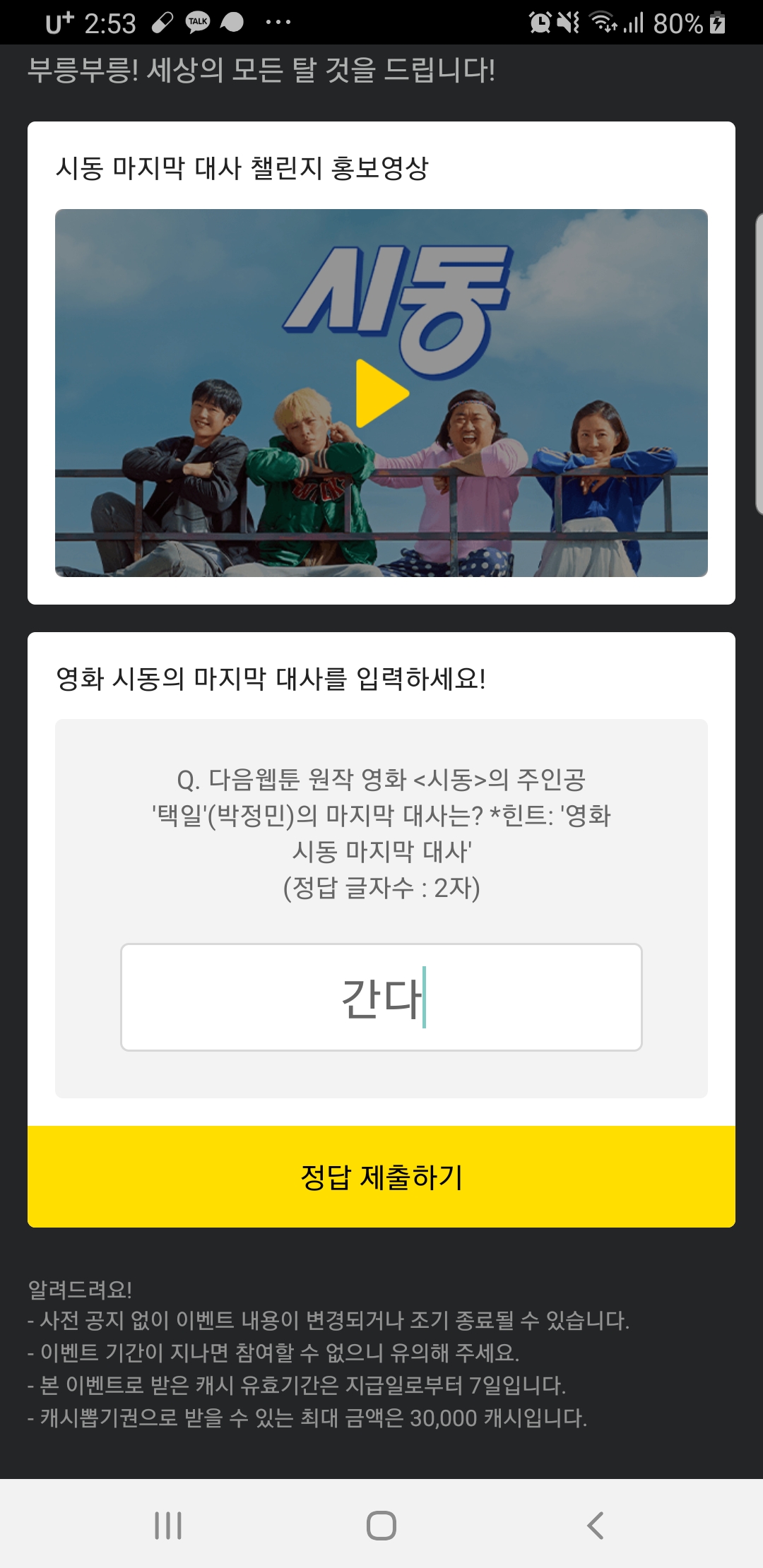 | 카카오페이지 퀴즈 정답은? '에버콜라겐예뻐딜' (0) | 2019.11.14 |