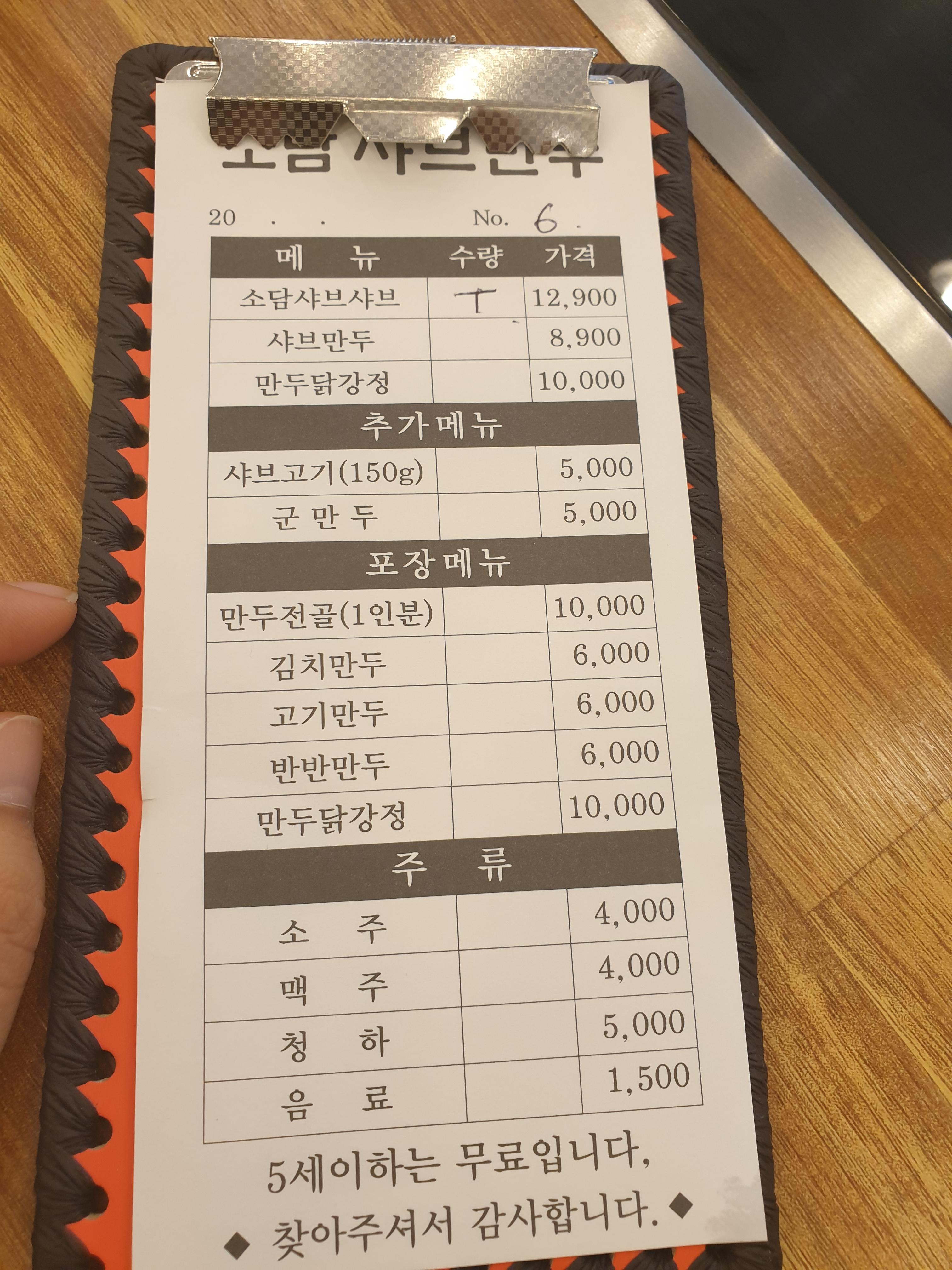 샤브만두로 주문하면 1인분의 샤브샤브를 먹을 수 있어요.