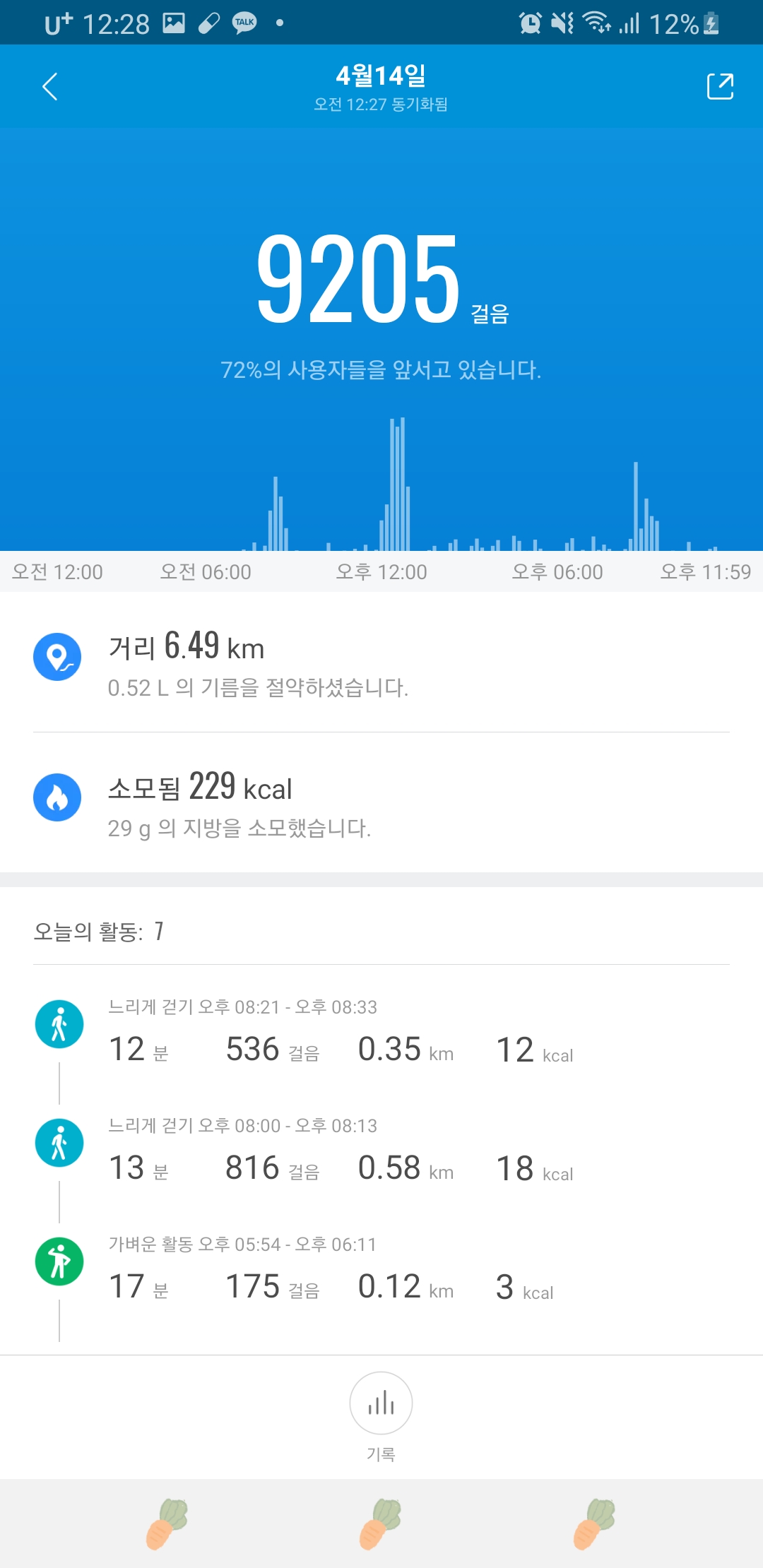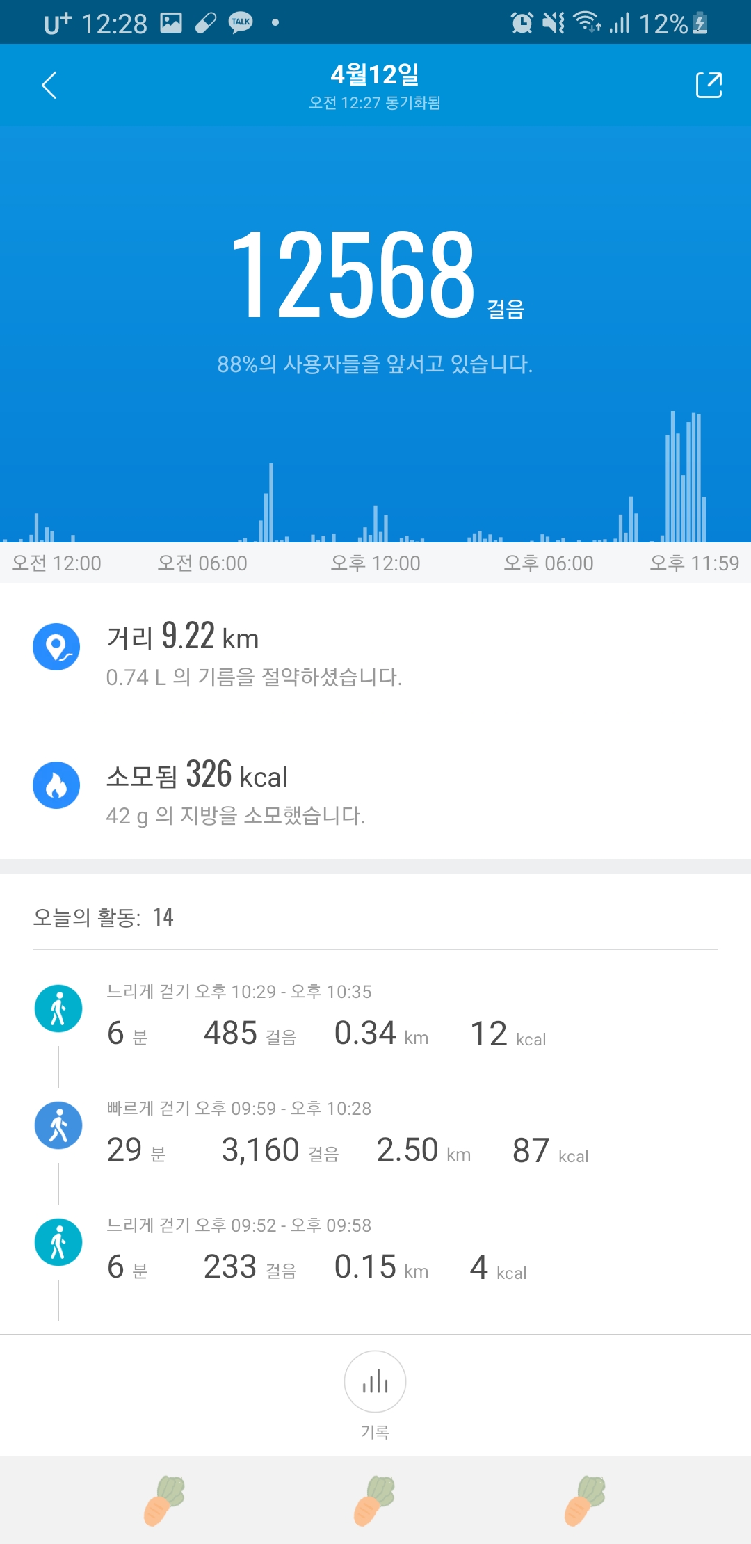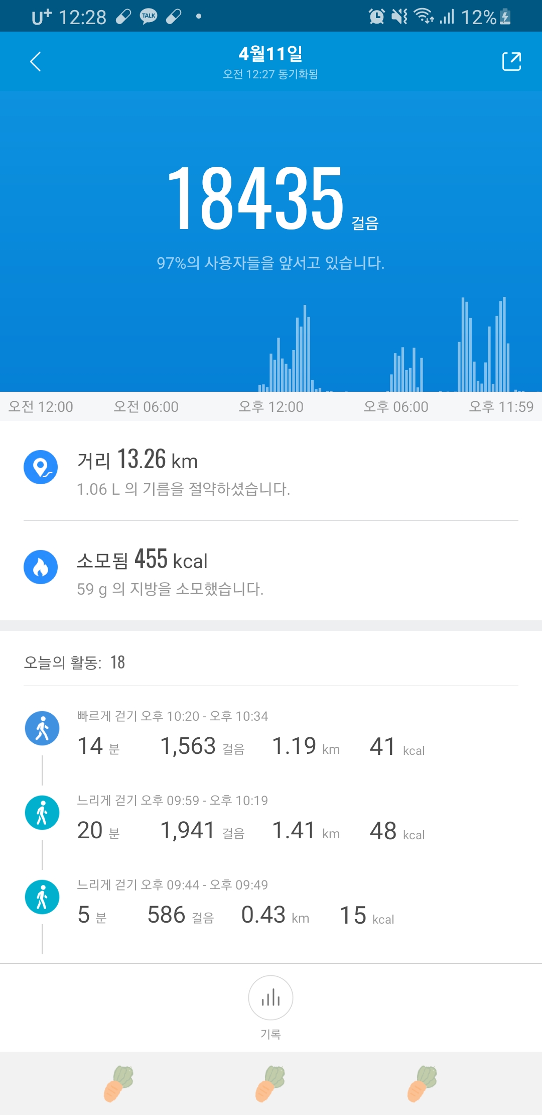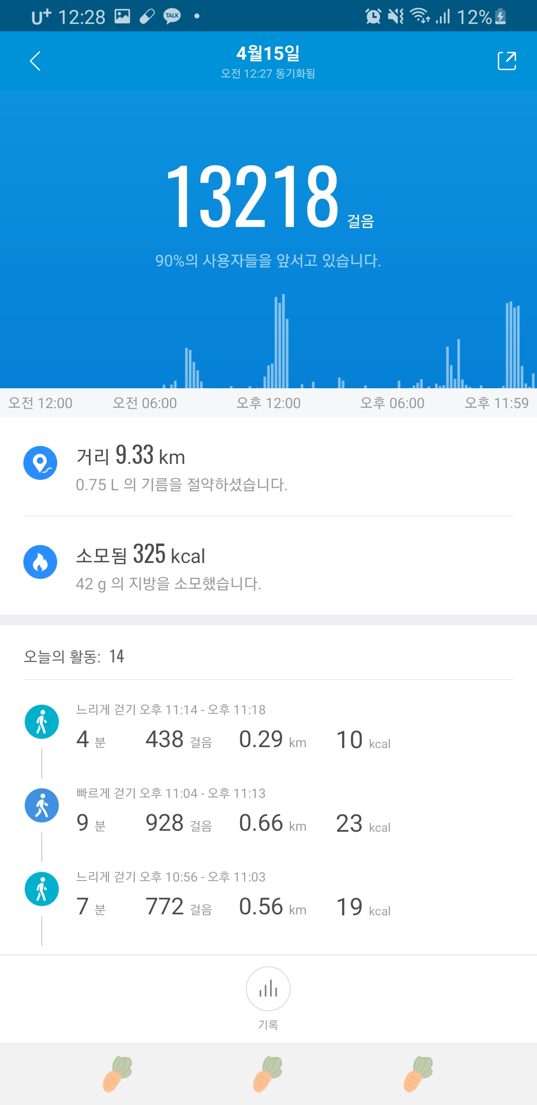 걸은 시간대 점심퇴근야간ㅋㅋ