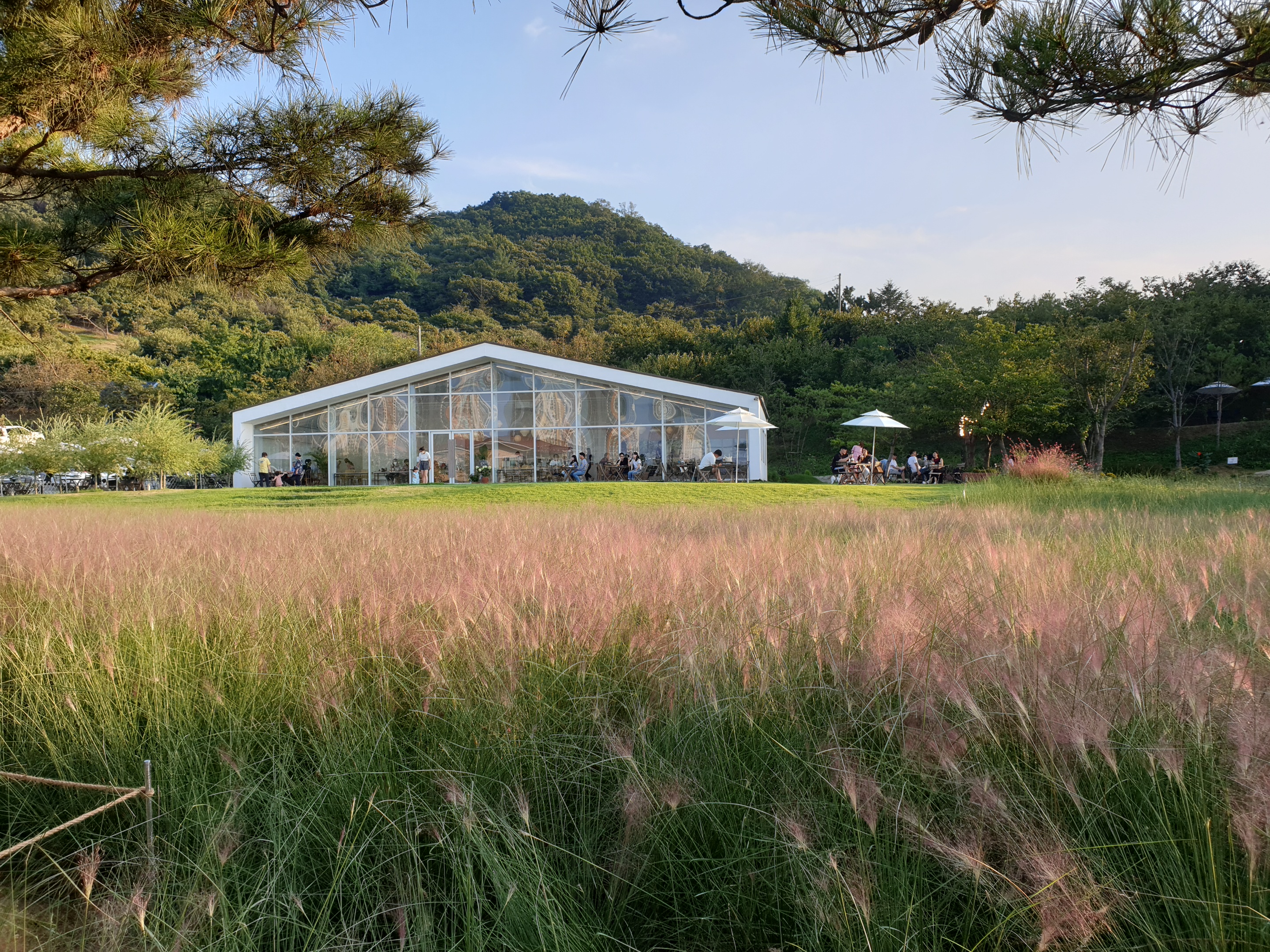 핑크 뮬리 뒤로 이숲 카페가 보이고 참 좋더라구요ㅋㅋㅋㅋ