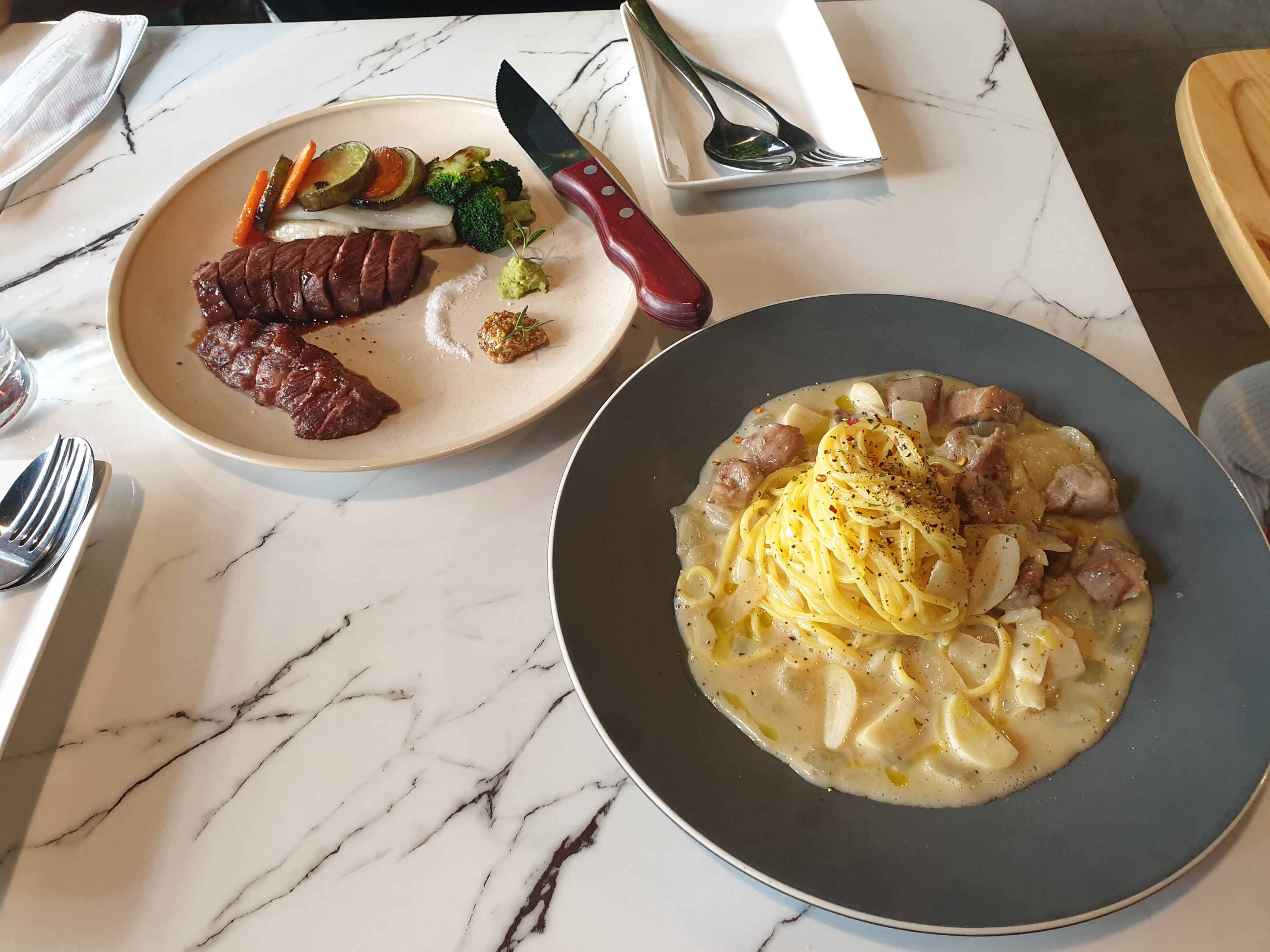 앞에 스테이크랑 파스타가 이미 20분 정도 기다린터라서 기분이 좋지는 않았어요.