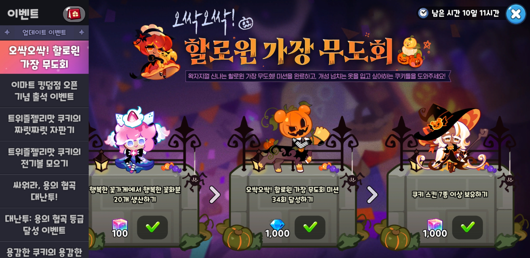오싹오싹 할로윈 이벤트 끝